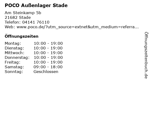 | Öffnungszeiten POCO Außenlager Stade in Stade anzeigen | |