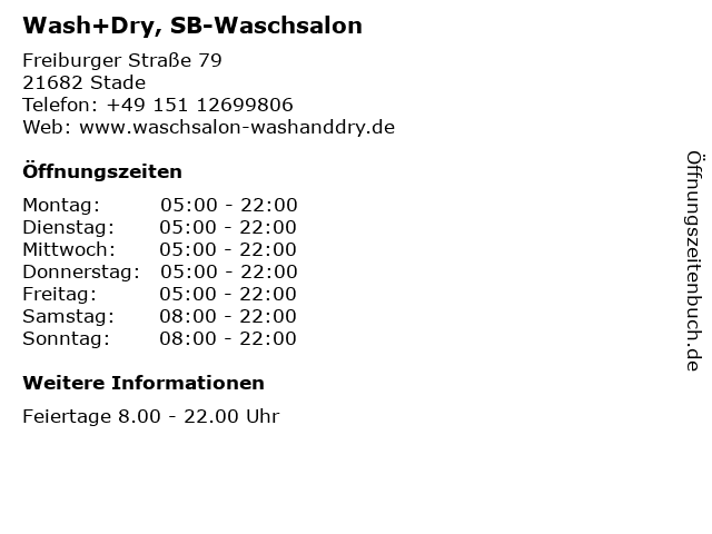 | Telefonnummer Wash+Dry, SB-Waschsalon in Stade (+49 151 12699806) anrufen | |