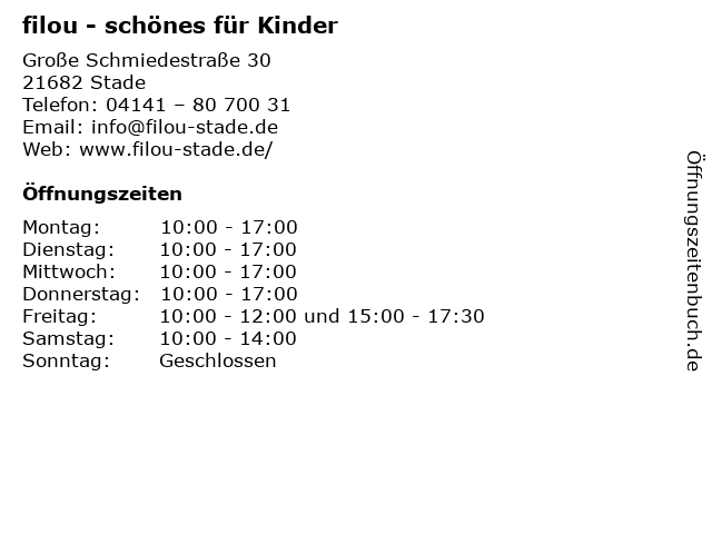 | Öffnungszeiten filou - schönes für Kinder in Stade anzeigen | |