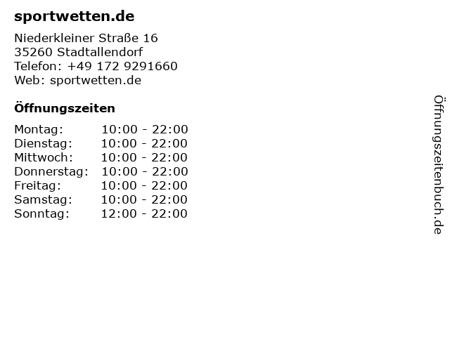| Öffnungszeiten sportwetten.de in Stadtallendorf anzeigen | |