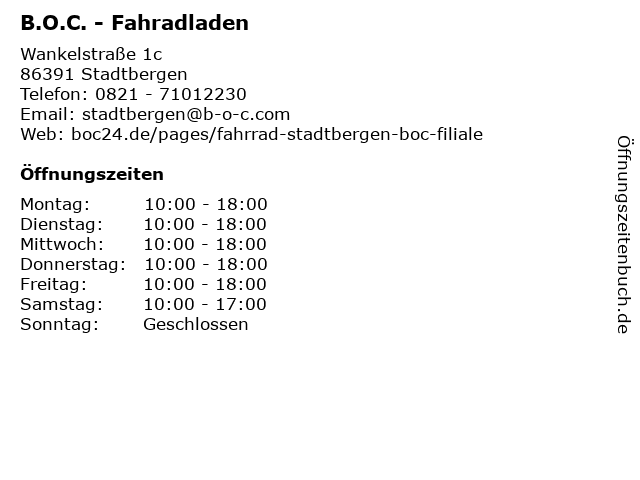| Öffnungszeiten B.O.C. - Fahradladen in Stadtbergen anzeigen | |