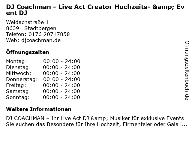 Branchen & Suchbegriffe zu DJ Coachman - Live Act Creator Hochzeits- & Event DJ:act, coachman, creator, dj, entertainer, event, event-planer, hochzeits, hochzeitsplanung, live |