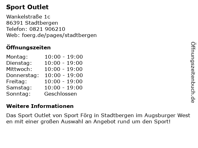 | Öffnungszeiten Sport Outlet in Stadtbergen anzeigen | |