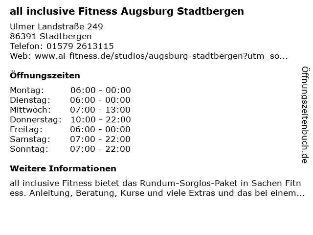 Branchen & Suchbegriffe zu all inclusive Fitness Augsburg Stadtbergen:all, fitness, hallensport, inclusive, wellness |