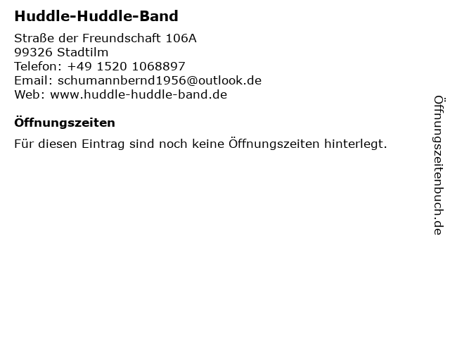 | Öffnungszeiten Huddle-Huddle-Band in Stadtilm anzeigen | |