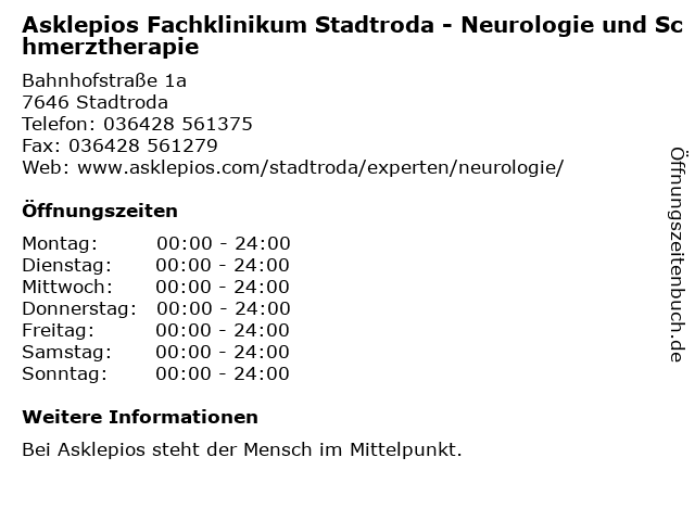 Branchen & Suchbegriffe zu Asklepios Fachklinikum Stadtroda - Neurologie und Schmerztherapie:asklepios, fachklinikum, neurologie, schmerztherapie |
