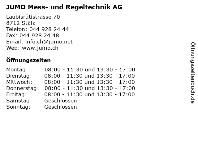 | Öffnungszeiten JUMO Mess- und Regeltechnik AG in Stäfa anzeigen | |