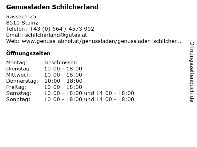 | Öffnungszeiten Genussladen Schilcherland in Stainz anzeigen | |