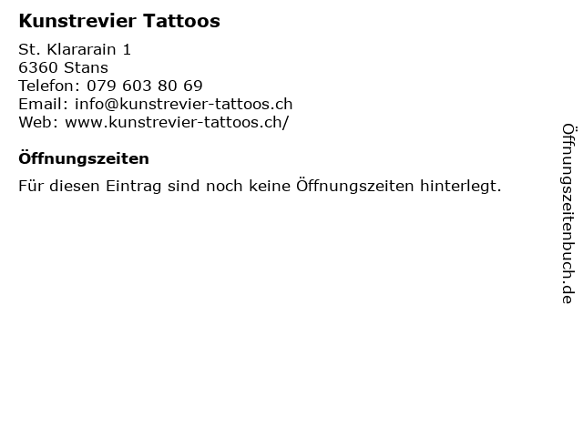 | Öffnungszeiten Kunstrevier Tattoos in Stans anzeigen | |