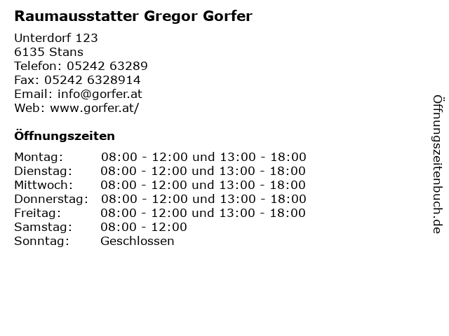 | Öffnungszeiten Raumausstatter Gregor Gorfer in Stans anzeigen | |