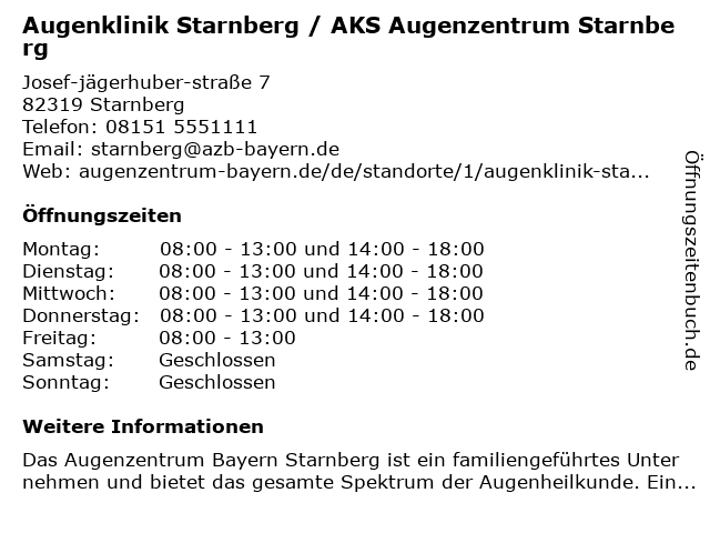 Branchen & Suchbegriffe zu Augenklinik Starnberg / AKS Augenzentrum Starnberg:aks, augenklinik, augenzentrum |