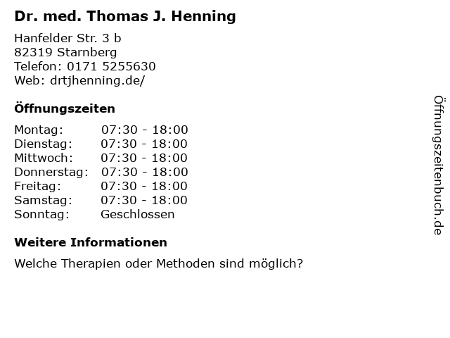 | Adresse Dr. med. Thomas J. Henning in Starnberg anzeigen |