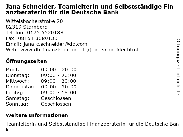 Branchen & Suchbegriffe zu Jana Schneider, Teamleiterin und Selbstständige Finanzberaterin für die Deutsche Bank:bank, deutsche, finanzberaterin, jana, schneider, selbstständige, teamleiterin |