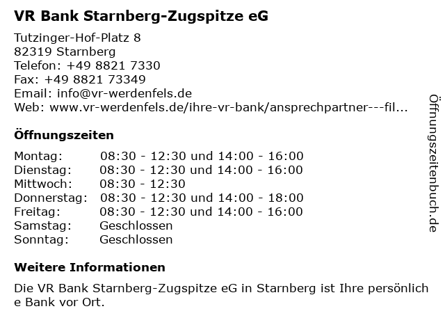 1 VR-Bank Werdenfels eG, Geldautomat (Entfernung: 0,00 km) Bahnhofstraße 43, 82467 Garmisch-Partenkirchen 2 VR Bank Starnberg-Zugspitze eG SB-Filiale Garmisch-Partenkirchen (Entfernung: 0,14 km) Von-Brug-Straße 7-11, 82467 Garmisch-Partenkirchen 3 VR Bank Starnberg-Zugspitze eG SB-Filiale Partenkirchen (Entfernung: 0,92 km) Ludwigstraße 95, 82467 Garmisch-Partenkirchen 5 VR Bank Starnberg-Zugspitze eG Filiale Oberammergau (Entfernung: 11,79 km) Bahnhofstraße 24, 82487 Oberammergau 6 |