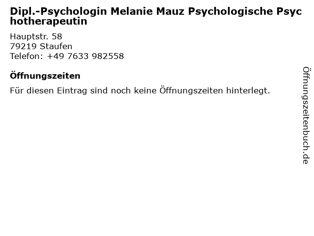 | Dipl.-Psychologin Melanie Mauz Psychologische Psychotherapeutin anrufen | |