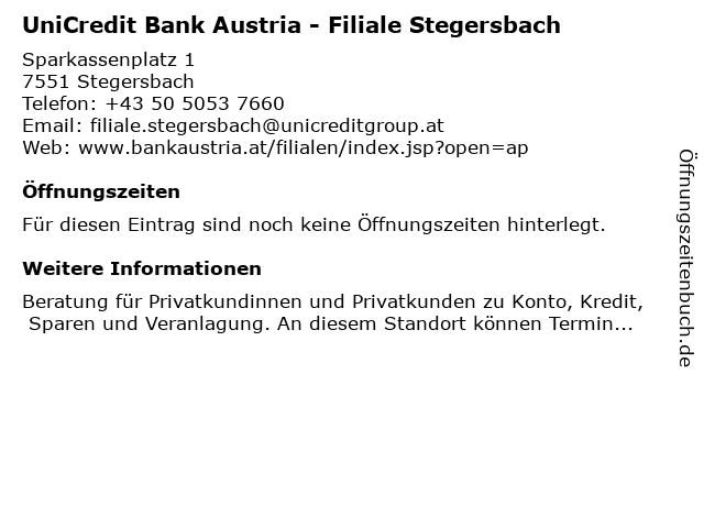 | UniCredit Bank Austria - Filiale Stegersbach anrufen | |