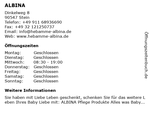 | Öffnungszeiten ALBINA in Stein anzeigen | |
