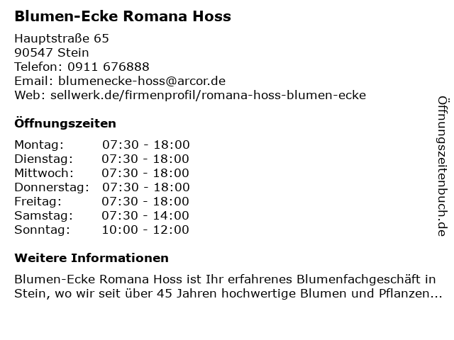 | Öffnungszeiten Blumen-Ecke Romana Hoss in Stein anzeigen | |