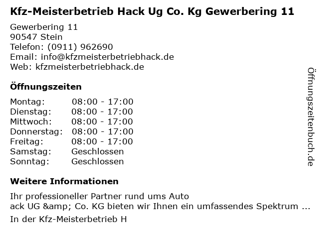 Branchen & Suchbegriffe zu Kfz-Meisterbetrieb Hack Ug Co. Kg Gewerbering 11:11, autoinspektionen, fahrzeugreparaturen, gewerbering, hack, kfz, kfz-meisterbetrieb, meisterbetrieb, ug |