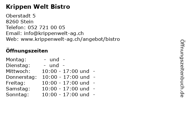 | Öffnungszeiten Krippen Welt Bistro in Stein anzeigen | |