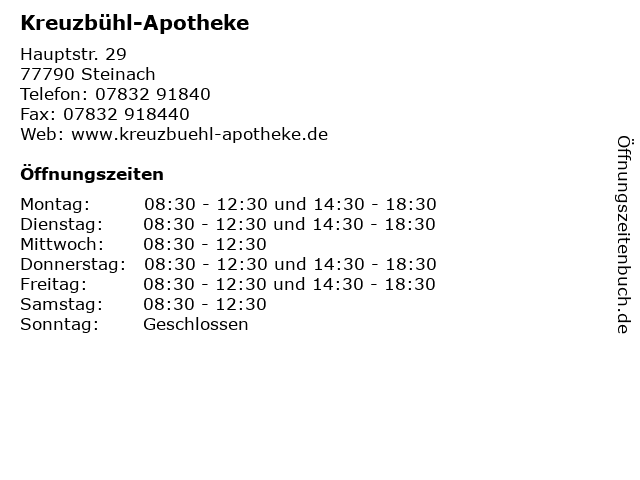 | Öffnungszeiten Kreuzbühl-Apotheke in Steinach anzeigen | |