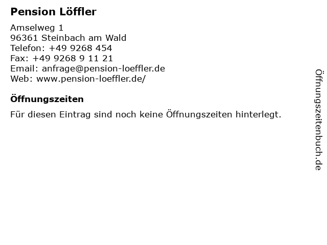 | Öffnungszeiten Pension Löffler in Steinbach am Wald anzeigen | |