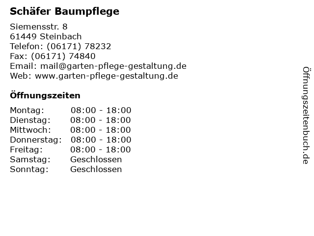 | Öffnungszeiten Schäfer Baumpflege in Steinbach anzeigen | |