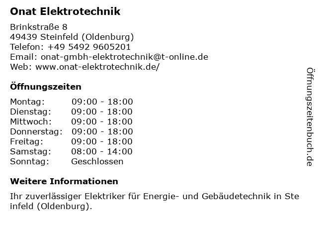 Branchen & Suchbegriffe zu Onat Elektrotechnik:blitzschutzanlagen, elektriker, elektrogeräteservice, elektroheizung, elektroinstallateure, elektroinstallation, elektrotechnik, elektrotechniker, onat, reparaturservice, warmwasserbereitung, wartungsservice |