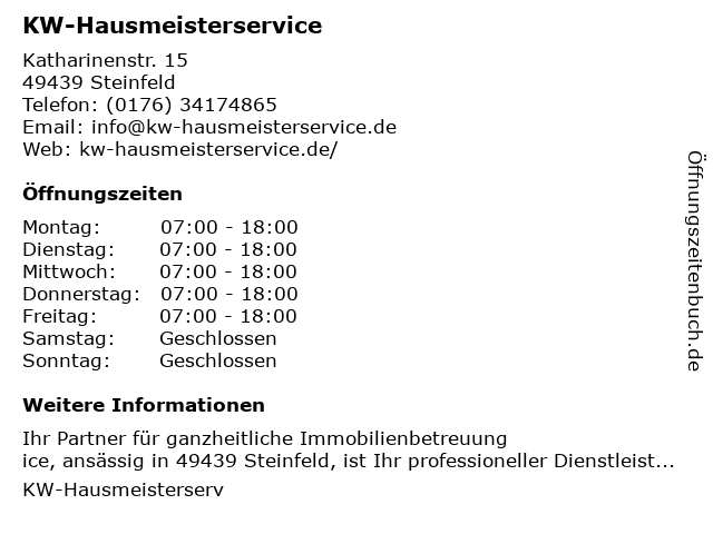 | Öffnungszeiten KW-Hausmeisterservice in Steinfeld anzeigen | |