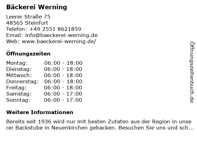 Öffnungszeiten Bäckerei Werning