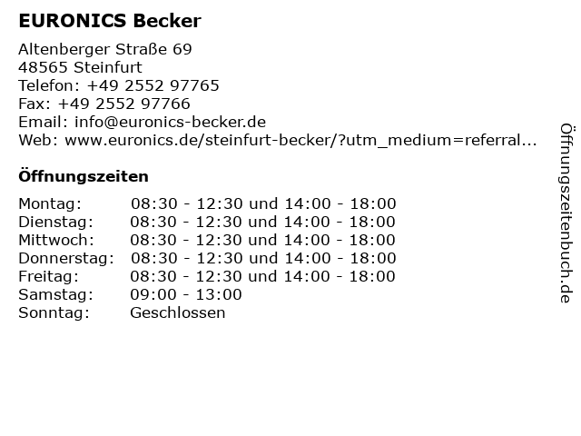 | Öffnungszeiten EURONICS Becker in Steinfurt anzeigen | |