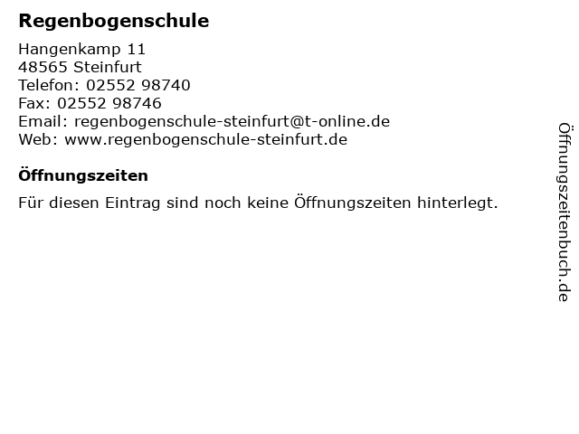 | Öffnungszeiten Regenbogenschule in Steinfurt anzeigen | |