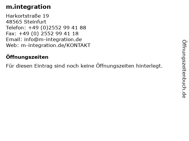| Öffnungszeiten m.integration in Steinfurt anzeigen | |