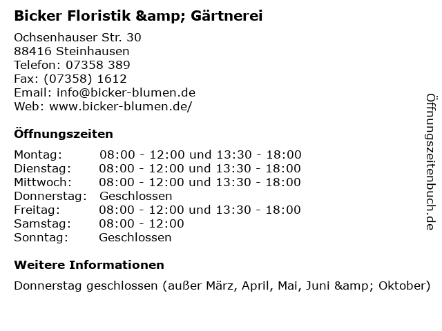 | Montag | 08:00-12:00 und 13:30-18:00 |