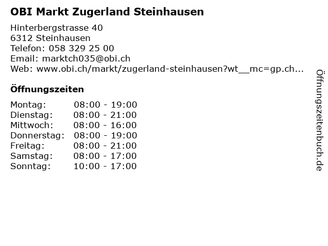 Branchen & Suchbegriffe zu OBI Markt Zugerland Steinhausen:anbieter für baumaterial, baumärkte, markt, obi, steinhausen, zugerland |
