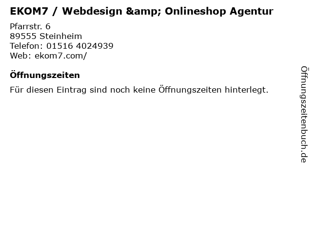 | EKOM7 / Webdesign & Onlineshop Agentur anrufen | |