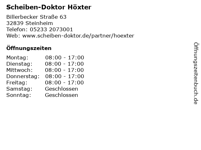 | Öffnungszeiten Scheiben-Doktor Höxter in Steinheim anzeigen | |