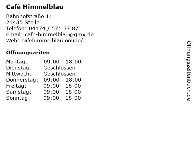 | Öffnungszeiten Café Himmelblau in Stelle anzeigen | |
