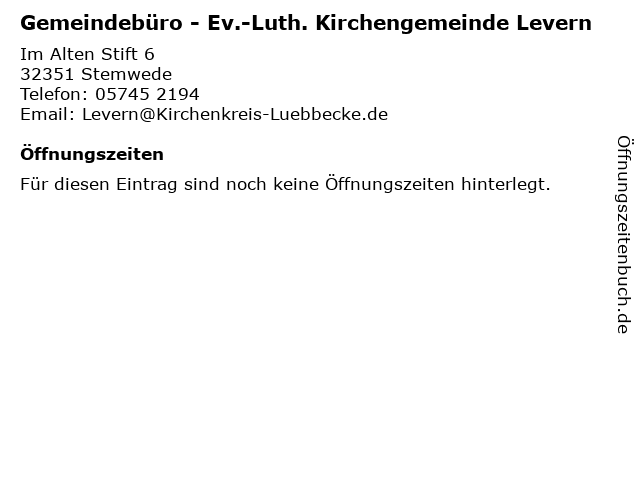 Branchen & Suchbegriffe zu Gemeindebüro - Ev.-Luth. Kirchengemeinde Levern:ev., gemeindebüro, kirchengemeinde, levern, luth. |