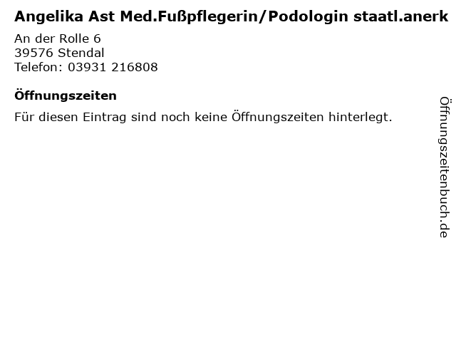 | Angelika Ast Med.Fußpflegerin/Podologin staatl.anerk anrufen | |
