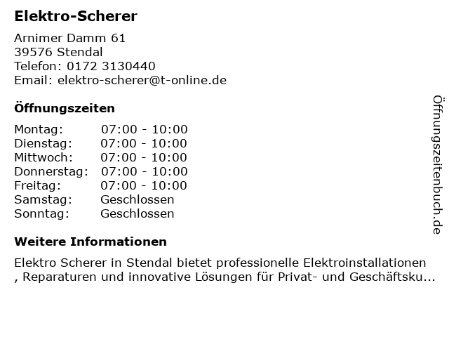 | Öffnungszeiten Elektro-Scherer in Stendal anzeigen | |