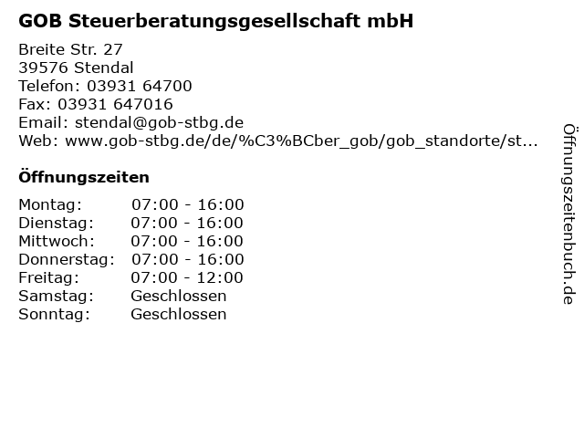 2 ETL AS Steuerberatungsgesellschaft mbH & Co. Stendal KG (Entfernung: 0,23 km) Markt 9 - 10, 39576 Stendal 5 MPP Mertens, Pfeiffer und Partner Steuerberatungsgesellschaft mbB (Entfernung: 0,76 km) Prinzenstr. 35, 39576 Stendal 6 HSP STEUER Altmark GmbH Steuerberatungsgesellschaft (Entfernung: 0,81 km) Scharnhorststraße 26, 39576 Stendal |