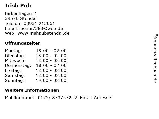 | Öffnungszeiten Irish Pub in Stendal anzeigen | |