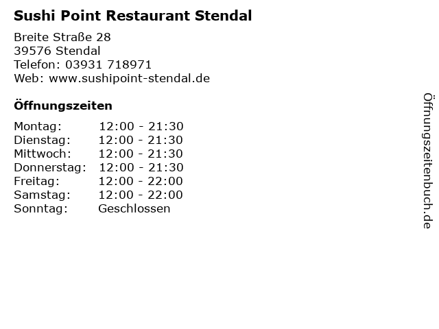 Branchen & Suchbegriffe zu Sushi Point Restaurant Stendal:gesunde ernährung, point, restaurant, restaurant stendal, sushi, sushi altmark, sushi stendal |