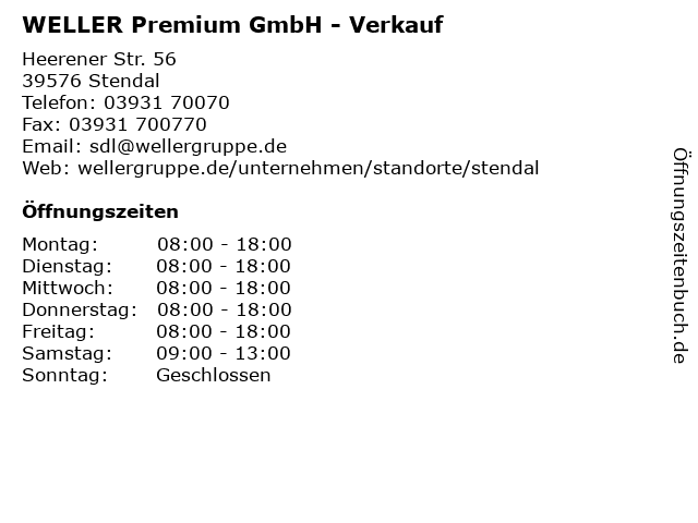 | Öffnungszeiten WELLER Premium GmbH - Verkauf in Stendal anzeigen | |