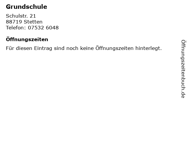 | Öffnungszeiten Grundschule in Stetten anzeigen | |