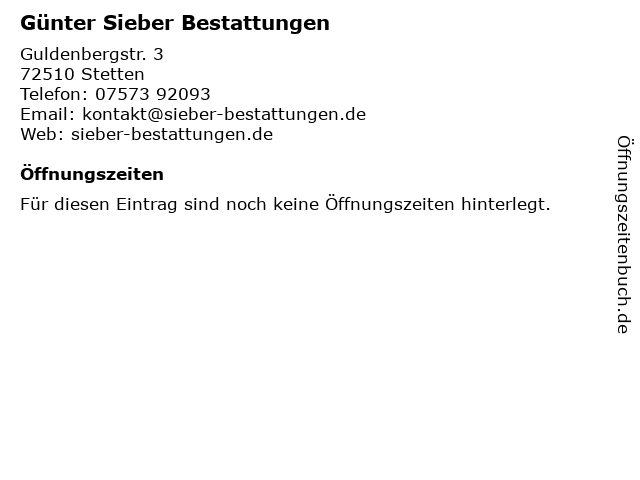 | Öffnungszeiten Günter Sieber Bestattungen in Stetten anzeigen | |