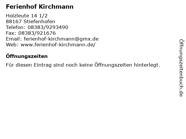| Öffnungszeiten Ferienhof Kirchmann in Stiefenhofen anzeigen | |