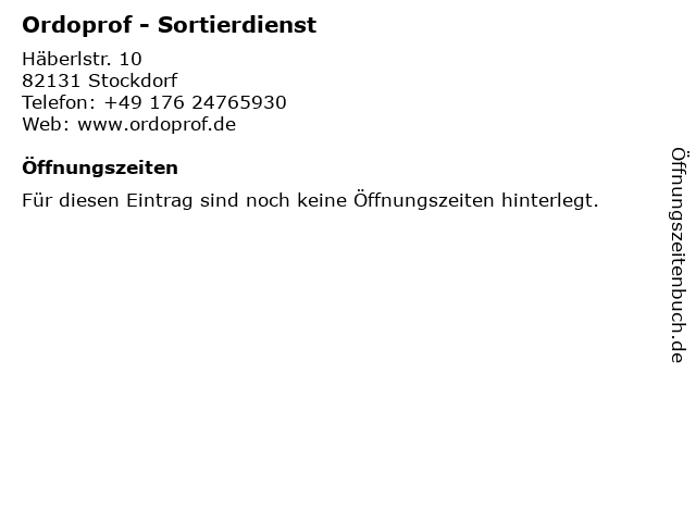 | Öffnungszeiten Ordoprof - Sortierdienst in Stockdorf anzeigen | |