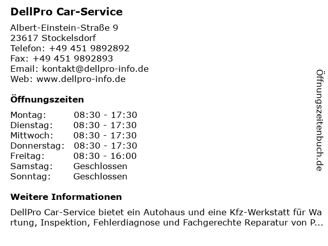 | Öffnungszeiten DellPro Car-Service in Stockelsdorf anzeigen | |